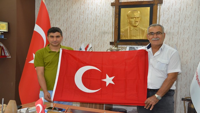 Ziyaret esnasında Başkan Kıran, Başkan Polat `a Türk Bayrağı Hediye etti.