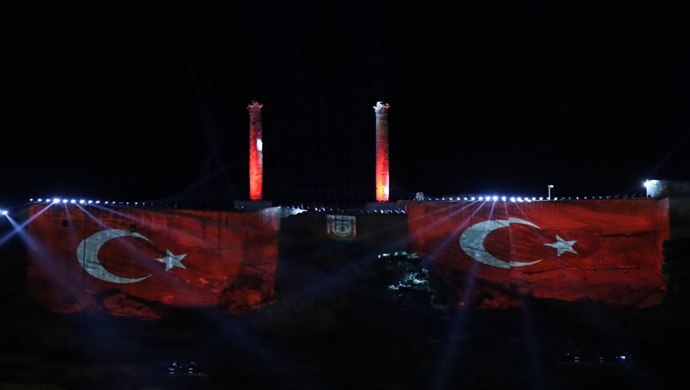 BÜLTEN NO : 158 TARİH : 10.04.2022 HABER BAŞLIĞI : KURTULUŞ TEMALI IŞIK VE LAZER GÖSTERİSİ TARİHİ URFA KALESİNE YANSITILDI