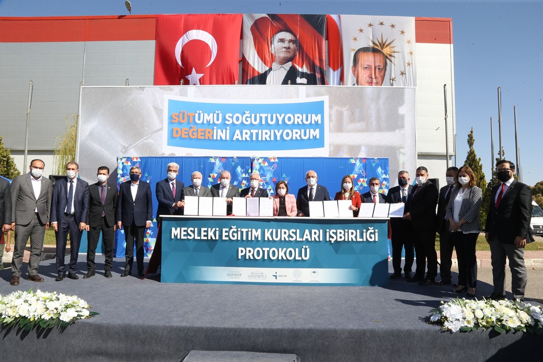 Programın devamında Gaziantep Büyükşehir Belediye Başkanı Fatma Şahin, Gaziantep Çalışma ve İş Kurumu İl Müdürü Sıraç Ekin, Gaziantep İl Milli Eğitim Müdürü Vekili Ayhan Sarı ve Gaziantep Tarım ve Orman İl Müdürü Mehmet Karayılan, tarım, gıda, hayvancılık ve yöresel ürünlerin; yetiştiriciliği, üretimi, işlenmesi ve paketlenmesi konusunda üreticiye eğitimler verilmesi amacıyla iş birliği protokolü imzalandı. İş birliği protokolü ile Büyükşehir Gastronomi ve Tarımsal Eğitim Merkezi’nde düzenlenecek olan eğitimlerle il içinde üretimi yapılan tüm tarımsal ürünler hakkında çiftçilere modern üretim teknikleri, budama, toprak işleme teknikleri, modern sulama yöntemleri, hastalık ve zararlı mücadelesi, biyolojik mücadele, biyoteknik mücadele yöntemleri ve alternatif ürün üretim teknikler öğretilecek.