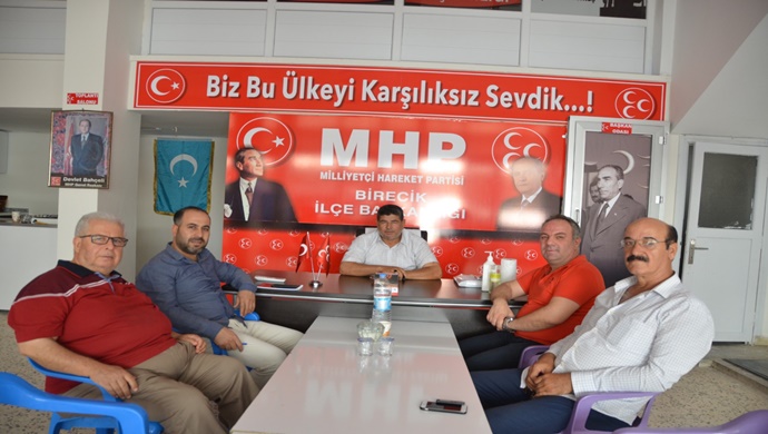 MTG Sigorta Yönetim Kurulu Başkanı ve Birecik Ticaret ve Sanayi Odası Başkan Aday Adayı Mehmet Tevfik Gülsoy, MHP Birecik İlçe Başkanı Ömer Güneş, Başkan Vekili Seyit Haşim Tuncay, Başkan Yardımcısı Harun Aslan ve Başkan Yardımcısı Köksal Aloğlu `nu Mhp Birecik ilçe binasında ziyaret etti.